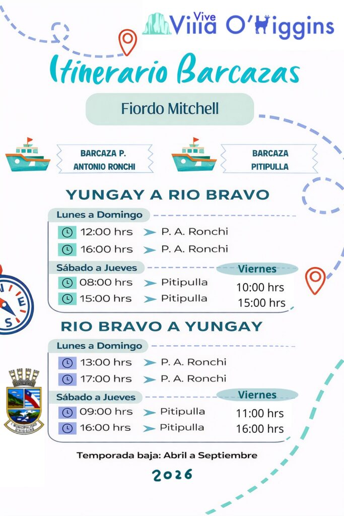 HORARIO DE LA BARCAZA EN FIORDO MITCHELL